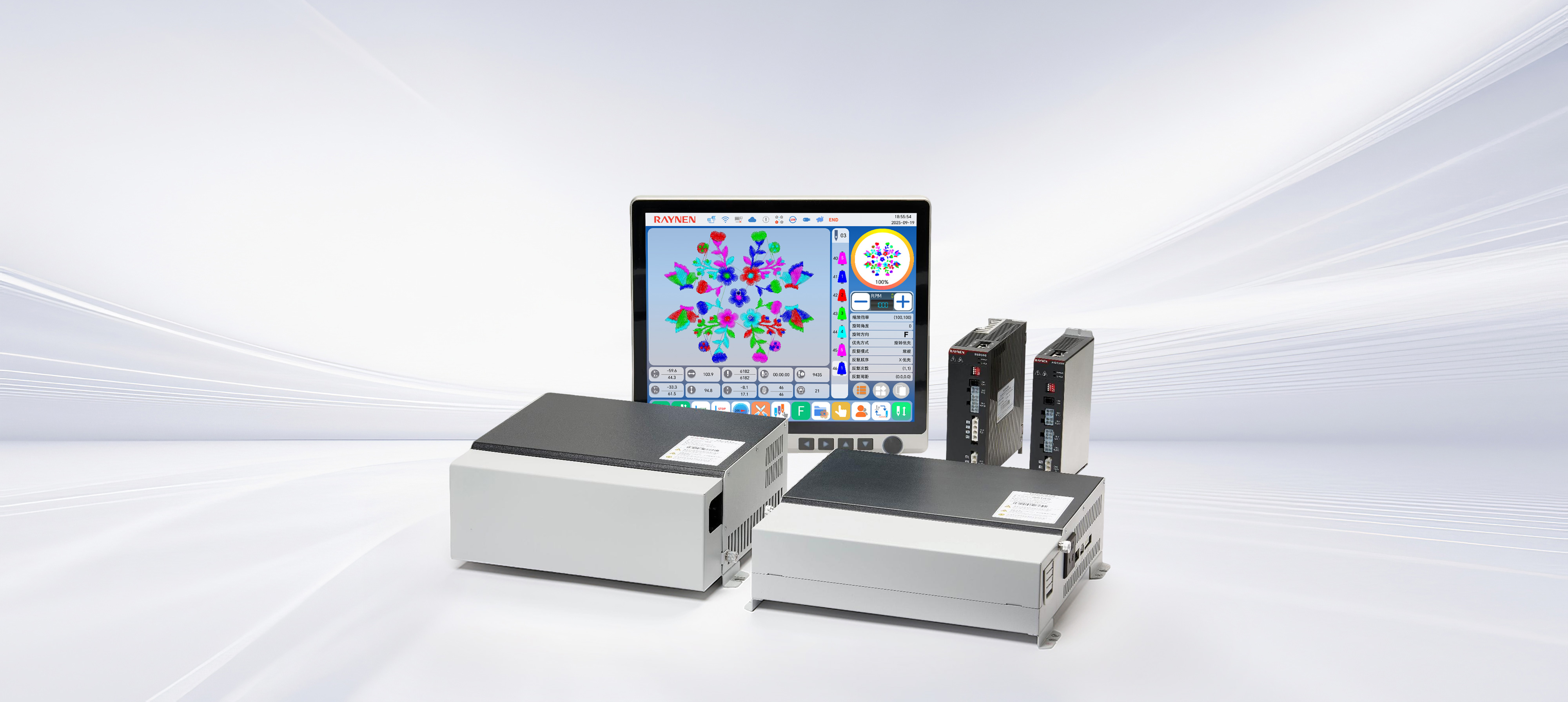 支持毛巾、平繡雙主軸、雙XY軸、雙H軸,支持多種換色、剪線驅(qū)動方式