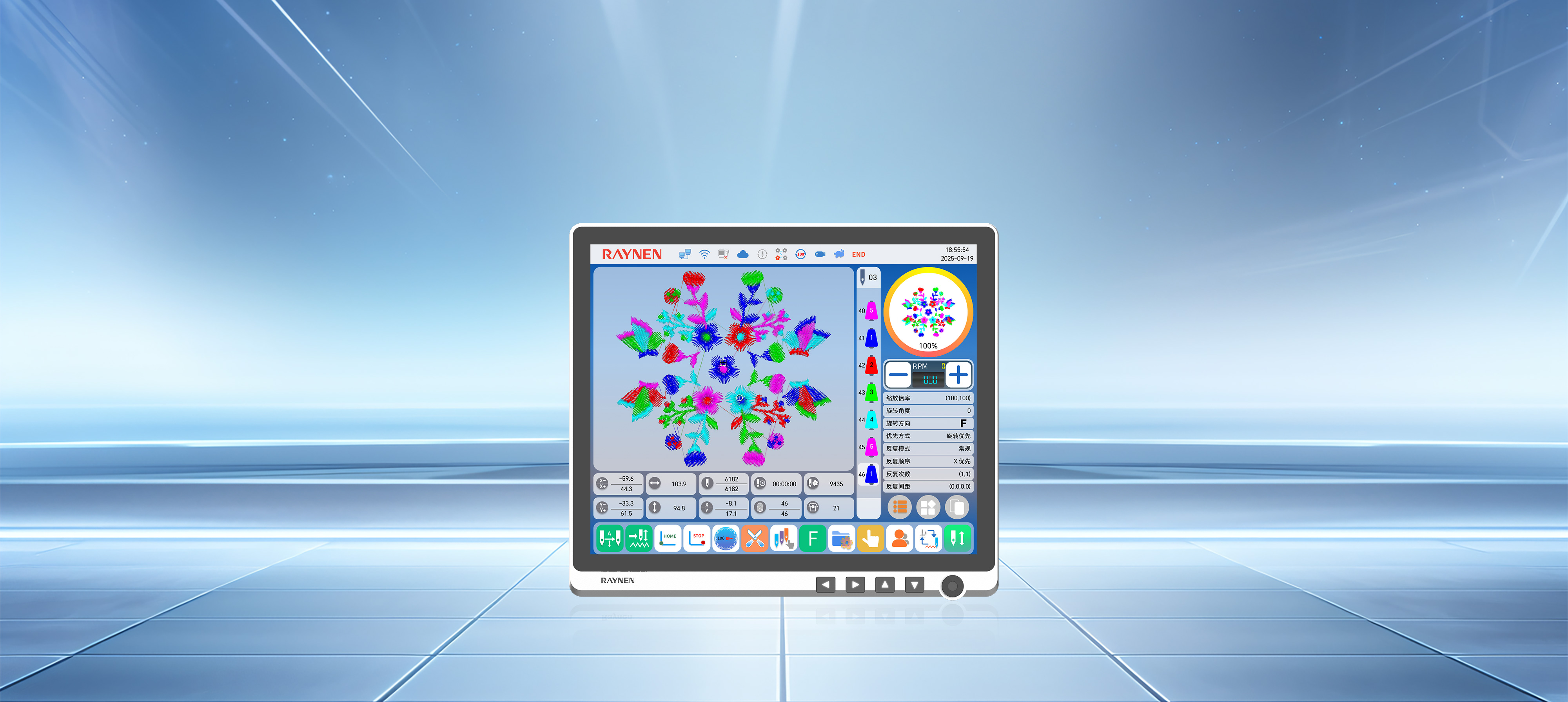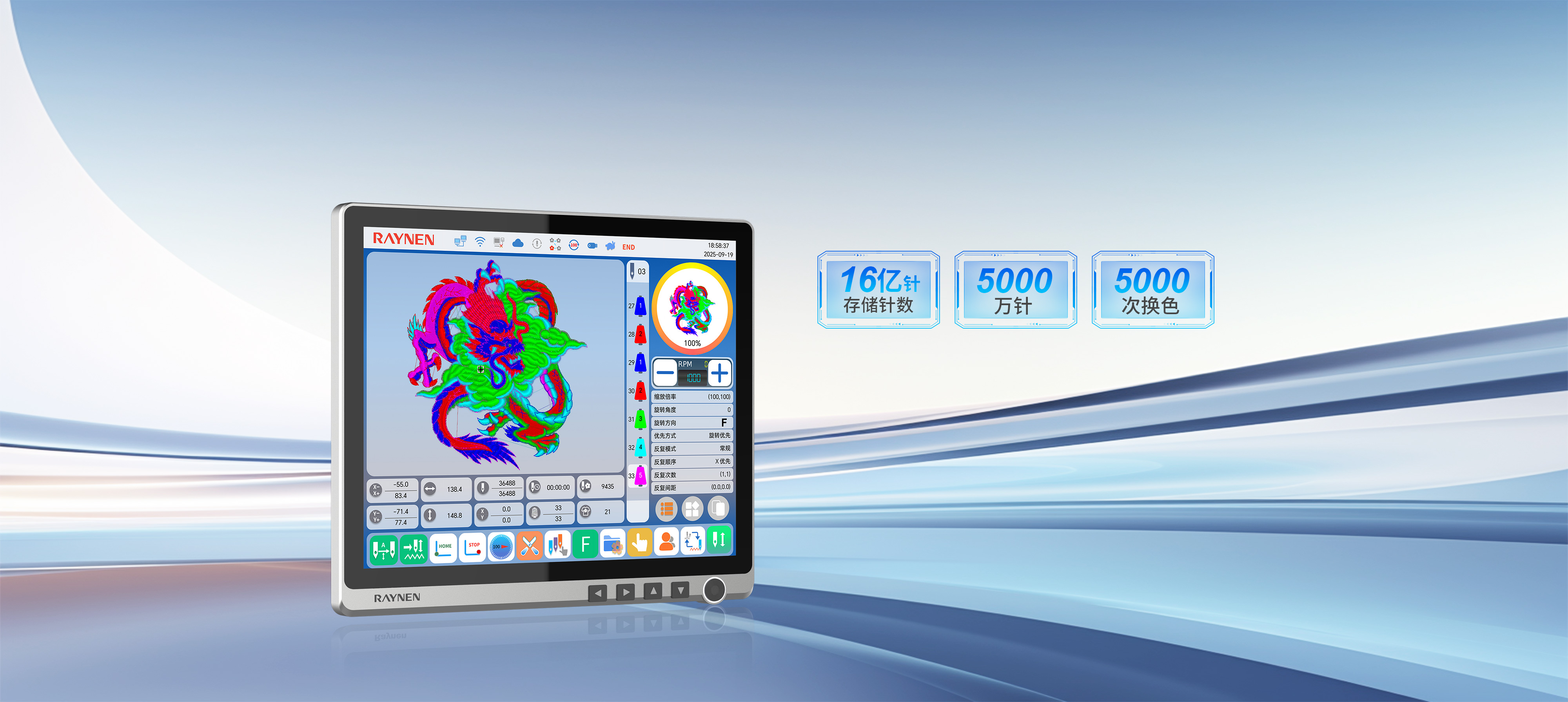 存儲針數(shù)達(dá)16億針,單個花樣可達(dá)5000萬針、5000次換色