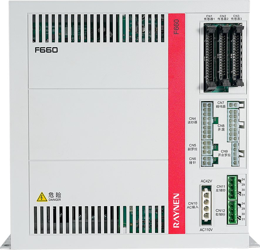 橫機(jī)電控,是電腦橫機(jī)的核心部件,它能通過(guò)識(shí)別打版系統(tǒng)制作的針織打版文件,猶如毛衫的打印機(jī)一樣,將毛衫或鞋面的設(shè)計(jì)變?yōu)楝F(xiàn)實(shí),主要由配電盤、主控盒、伺服、起底板、羅拉驅(qū)動(dòng)、機(jī)頭以及相關(guān)線材組成。