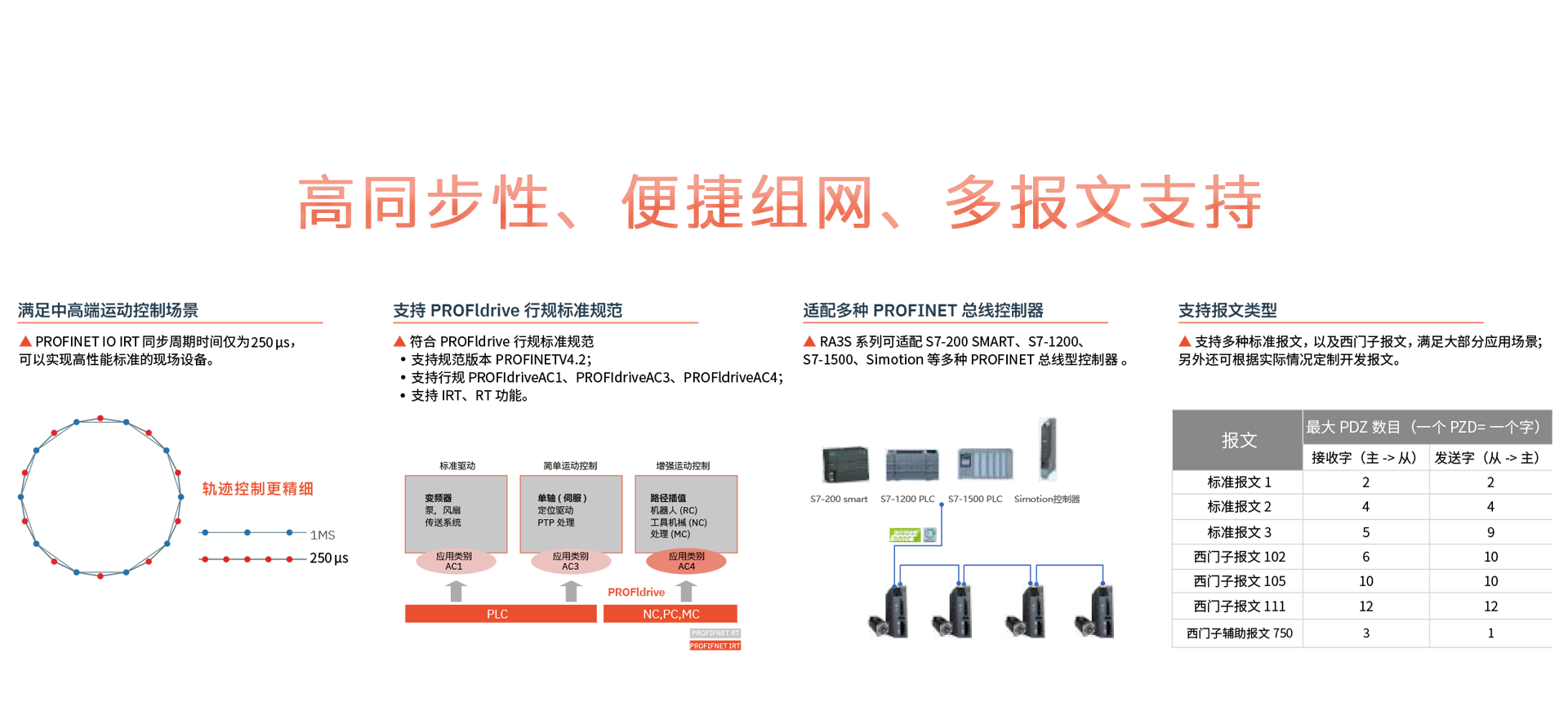 | 支持的模式 | PROFIDriveAC1、 PROFIDriveAC3、 PROFIDriveAC4 | ||