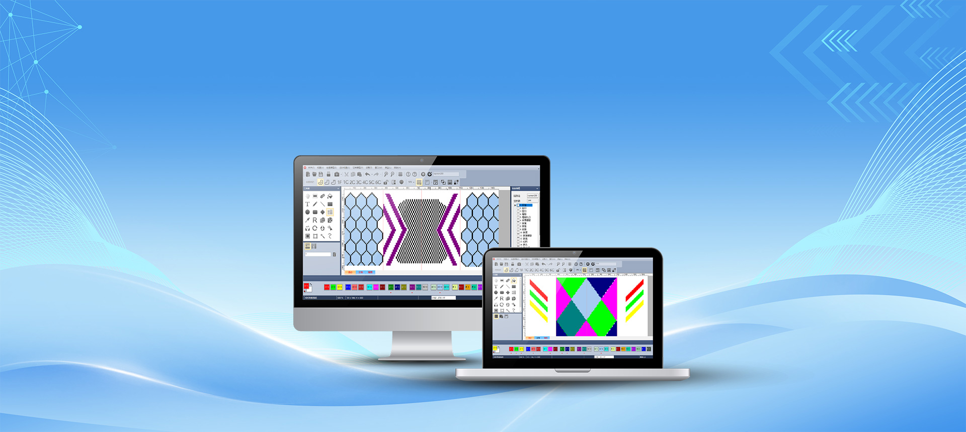 簡便操作模式精準實現(xiàn)花樣繪制,兼容市面上絕大部分鏈條程序,不同格式花型支持制版內直接修改保存。